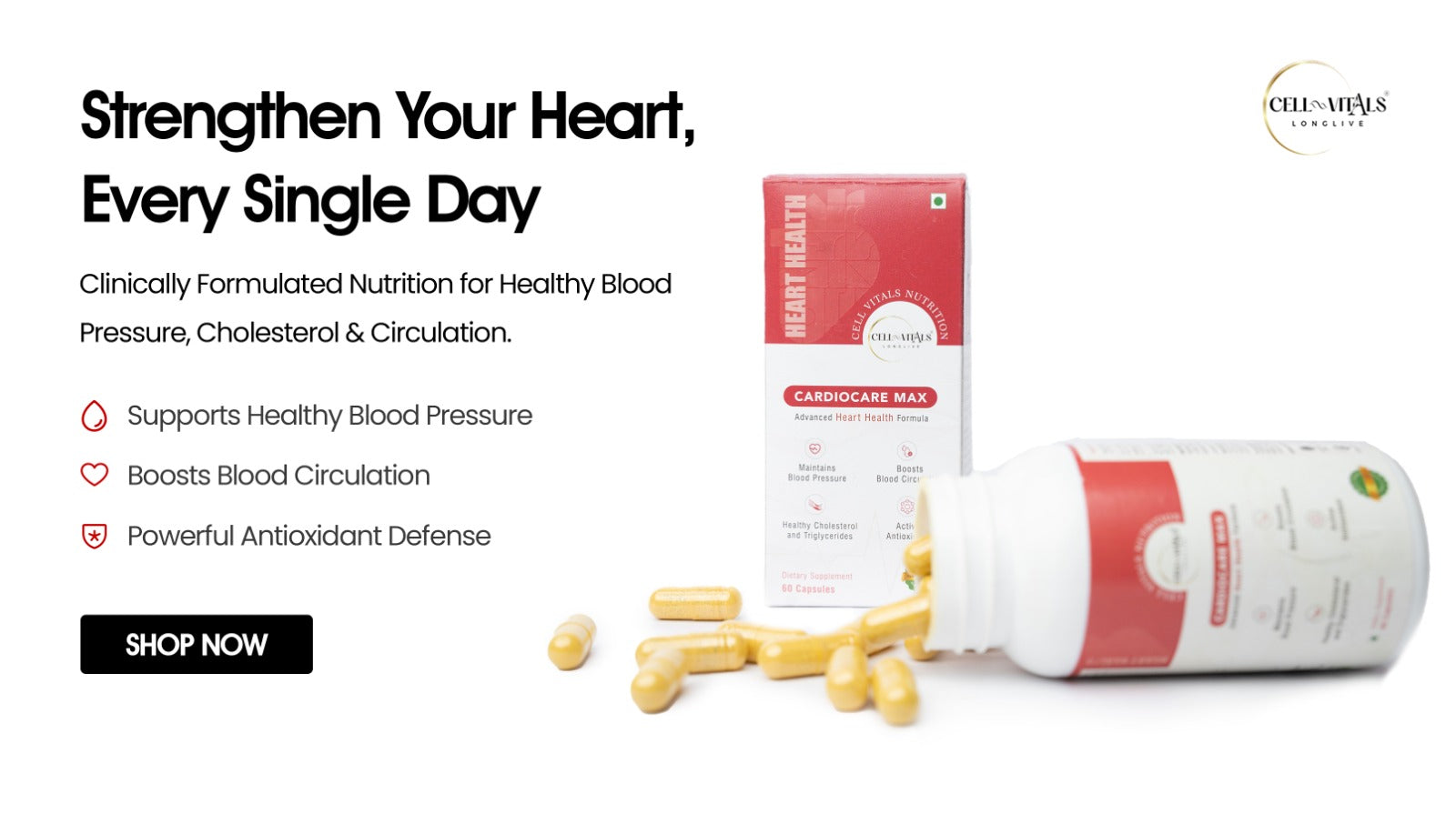 Explore doctor-formulated heart health supplements by Cell Vitals Nutrition. Support blood pressure, cholesterol balance, circulation & heart energy naturally.