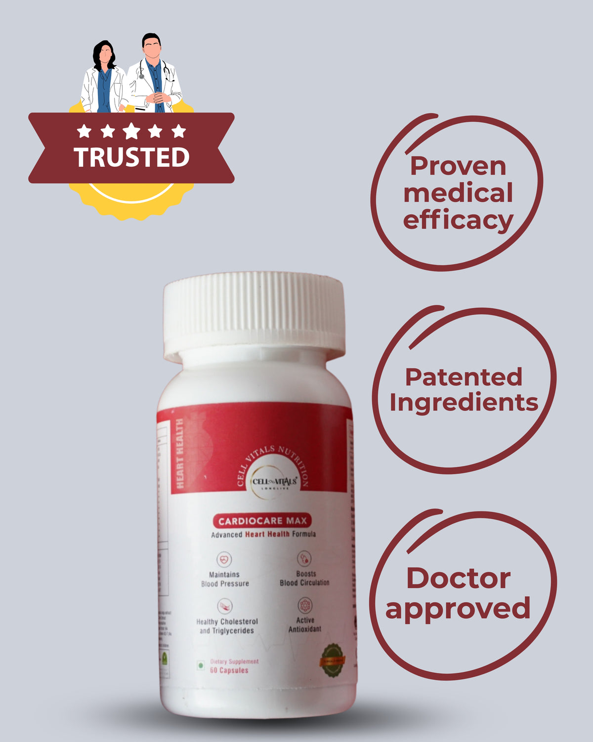Cell-Vitals CardioCare Max is India’s first 60-day heart care formula, with patented ingredients, crafted by doctors and backed by science — for people who want to protect their heart before symptoms begin.