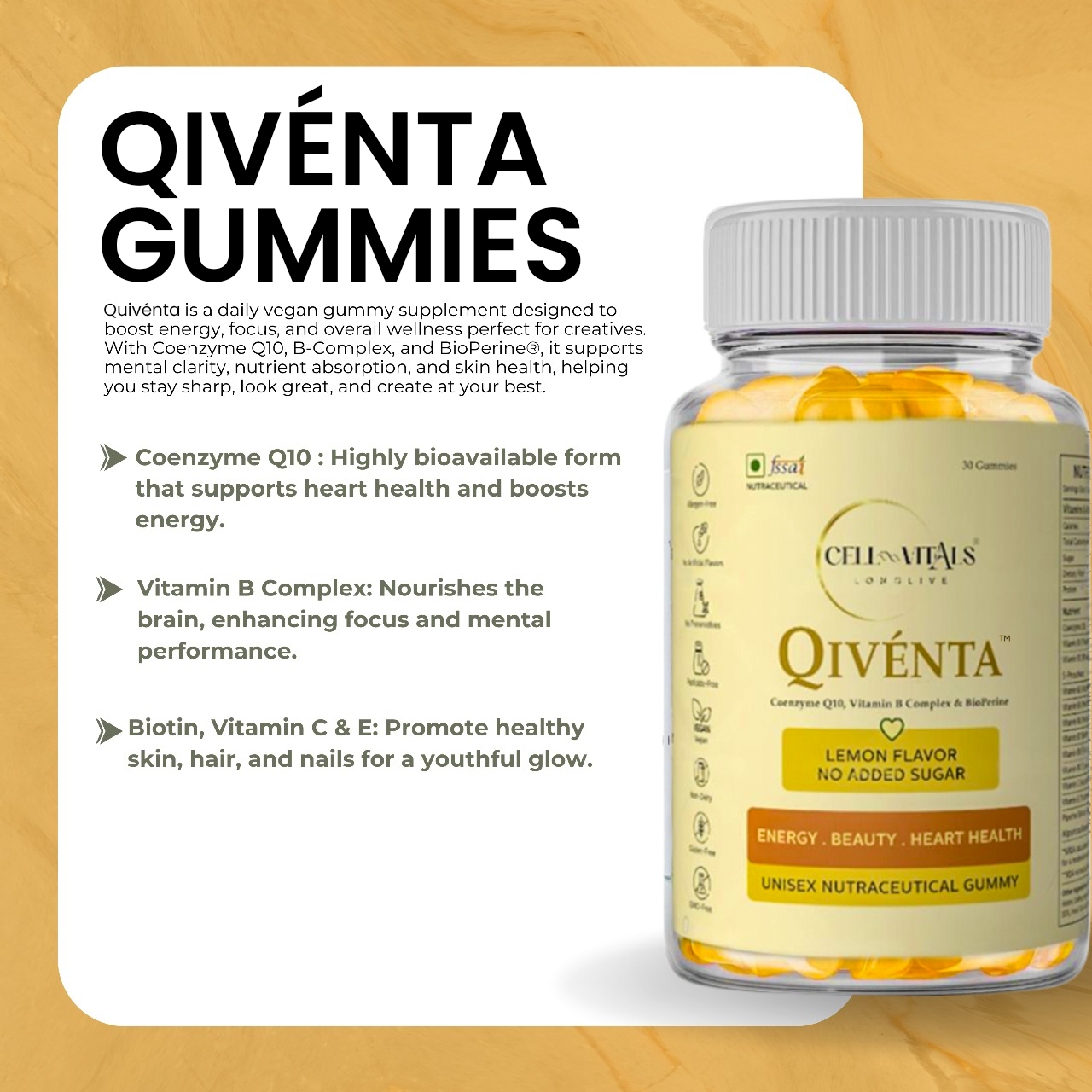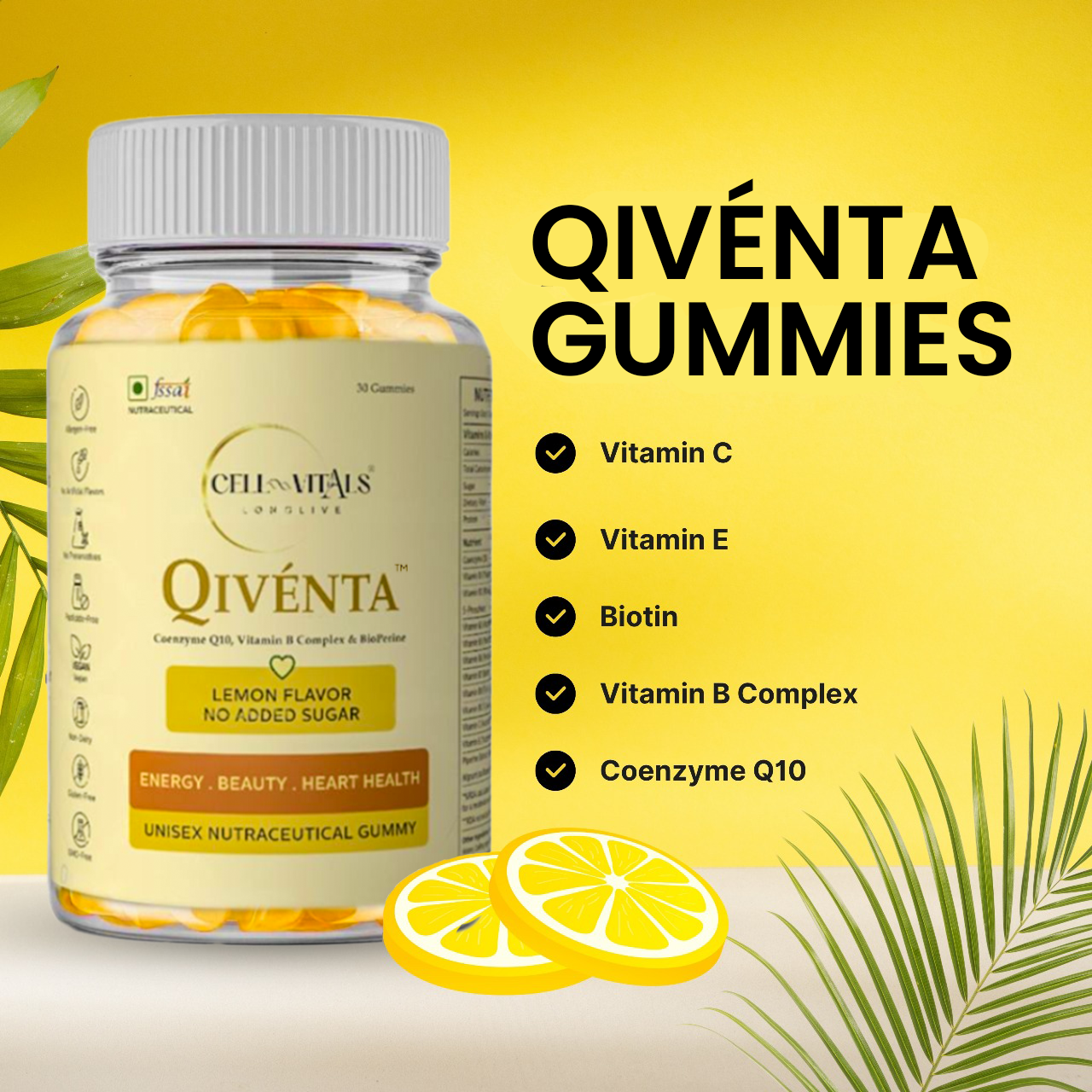 Meet Qivénta™ — India’s first-ever CoQ10 + BioPerine® infused gummy designed for modern wellness.