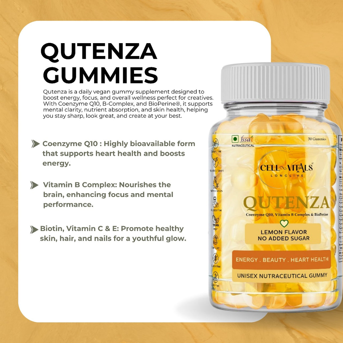 Meet Qutenza™ — India’s first-ever CoQ10 + BioPerine® infused gummy designed for modern wellness.